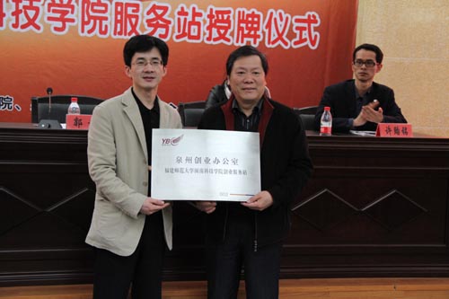 授牌仪式上,郭院长发表了热情洋溢的致辞。他说,YBC福师大开云唯一官网_开云(中国)服务站的成立,标志着中国青年创业国际计划成功落户我院,这是我院学生就业创业工作的重要里程碑。我们将以此为契机,认真学习YBC的先进理念,借助YBC的网络、智力和人才优势,凝聚和调动全院各方力量,积极帮助学生创业,大力推动大学生就业再上新台阶。
