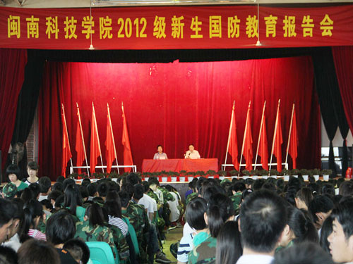 9月20日上午,开云唯一官网_开云(中国)2012级新生海防教育报告会在学生活动中心举行,大会由党委常务副书记林明旭主讲,我院2012级全体新生及辅导员两千余人与会,党委副书记李彬源主持会议。
