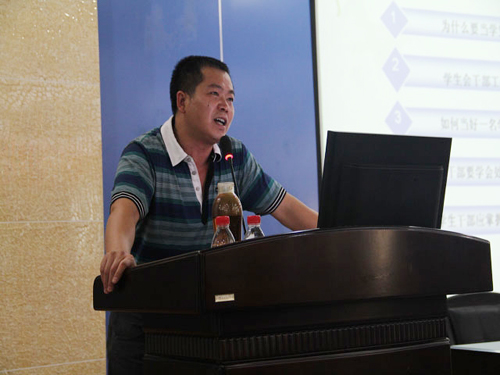 李副书记以学生工作的常见现象如:“好的决策无法如预期贯彻”、“团队没有凝聚力、战斗力”、“干部工作效率低”等为切入点,分析了学生干部执行力低下的原因。他强调,执行力是一个人办事情的能力,一个团队的战斗力,一个组织发展的能力。增强干部自身的执行力,是每一项任务获得成功的保证。对于学生干部如何突破瓶颈提高执行力,李副书记向大家推荐了“上行下效,坚决执行;认真第一,聪明第二;监督有力,赏罚分明;锁定目标,简单重复”的32字执行方针。他还和同学们分享了自身多年的工作习惯和经验,通过生活细节中生动有趣的事例引发同学深思。