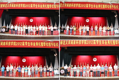 6月27日上午,我院2012届学生毕业典礼暨学位授予仪式在学生活动中心隆重举行。福建师范大学副校长、博士生导师许明教授,福建师范大学校长助理郭警修同志,南安市教育局局长吴亚明同志,福建师范大学博士生导师、原学院院长黄国盛教授,地理科学学院党委书记、原学院党委常务副书记林国庆同志,学院董事会戴宏达董事长、戴宽南副董事长、董事长助理戴景星同志,学院领导郭丹、林明旭、肖华山、陈振祯、周勇军,部分学生家长、学院各系主任、各部门负责人、教师代表、各专业辅导员、2012届全体毕业生参加了典礼。