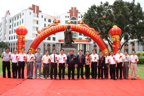 6月26日上午,我院在校大门口举行孔子圣像揭幕仪式。圣像捐赠人、香港孔教学院院长、国际儒学联合会副理事长汤恩佳博士,香港孔教学院副院长、香港汤恩佳孔子思想宣讲团永久荣誉团长、香港孔教总会永远名誉会长吕天增先生,香港汤恩佳孔子思想宣讲团团长、复旦大学博士杨发坤先生,南安市副市长李清安先生,福建师范大学校长助理郭警修先生,泉州市文庙管理处何振良先生,福州市孔子学会常务副会长柯远扬教授,福州市孔子学会秘书长、孔子75代孙孔海钦先生,我院戴宏达董事长、戴宽南副董事长、郭丹院长、林明旭党委常务副书记和有关部门负责同志、师生代表,福州市孔子学会理事、部分会员以及社会各界人士参加了揭幕仪式。仪式由我院周勇军副院长主持。