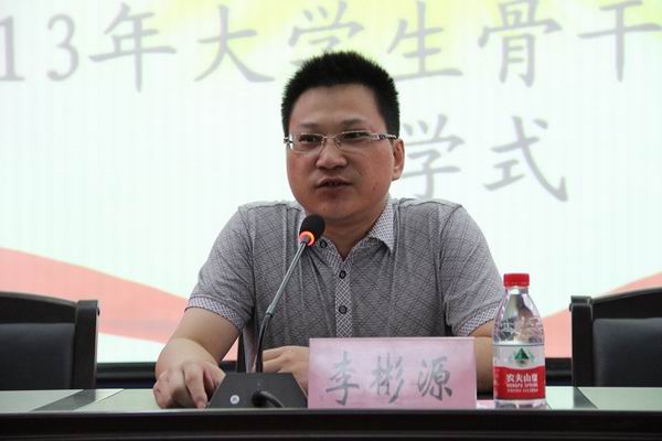 8月30日上午,学院2013年大学生骨干培训班开学式在图书馆学术报告厅举行。院党委副书记李彬源、学工部部长林树生,以及学院学工部、团委相关老师、学生干部参加了开学式。开学式由团委副书记庄天怀主持。