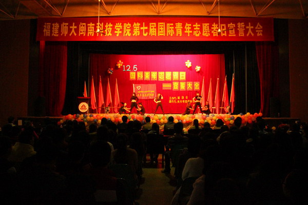 12月6日下午,我院第七届国际青年志愿者宣誓大会在康美校区学生活动中心举行。福州市文儒书院副秘书长朱仁富、我院团委副书记庄天怀,及部分教师、学生志愿者参加了大会。