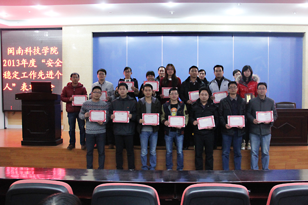 会上,党委副书记李彬源宣读了《学院关于表彰2013年度“安全稳定工作先进个人”的决定》。与会领导为15名获奖先进个人颁奖。