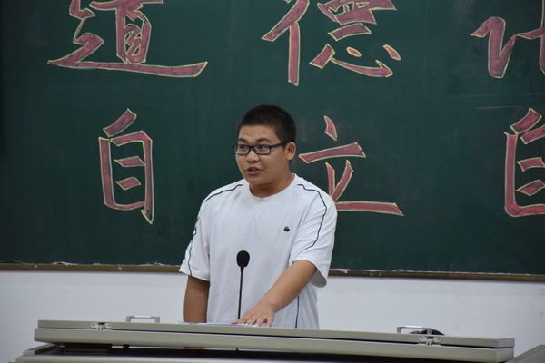 一首激情澎湃的歌曲《我相信》拉开了此次道德讲堂的帷幕,美妙的音符、跳动的旋律、热情的同学们唱出了青春的气息。在同学声情并茂的诵读完《中国少年说》之后,全场师生一起聆听了学院“自强之星”周晨旭同学的故事。他用自己的故事告诉同学们:“真正的强者,不是流泪的人,而是含泪奔跑的人!”在听完周晨旭同学的事迹后,同学们积极地发表自己的感受和体会。活动现场,师生们还通过微博传送祝福,并在倡议横幅上签名,宣扬自强自立。