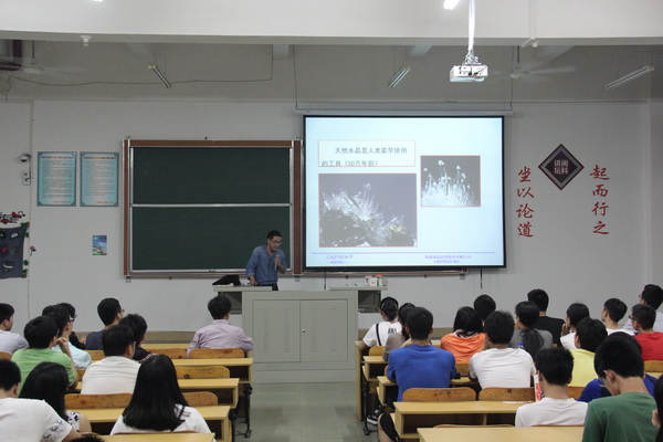 讲座围绕“人工晶体的重要性”,从概念、应用、分类、生长方法以及人工晶体的生长案例五个方面展开。阐述了人工晶体在生活、生产以及军事方面的重要应用。以实际生产操作过程介绍了福晶科技股份有限公司有关人工晶体生长的强项方法——熔剂法,以及公司目前的主打产品——LBO晶体。此外,陈伟就晶体研究的知识储备方面希望同学们学好大学物理、高等数学、物理、化学等十多门与晶体相关的课程以及掌握科技文献查询技巧等。