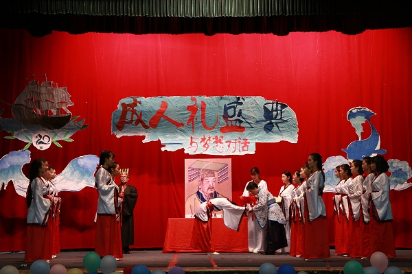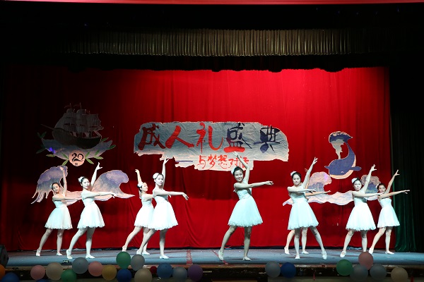 成人礼盛典分为“梦起航·华夏霓裳”、“共担当·旗帜飞扬”、“笃青春·对话梦想”三个篇章。