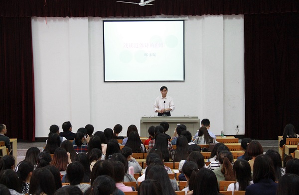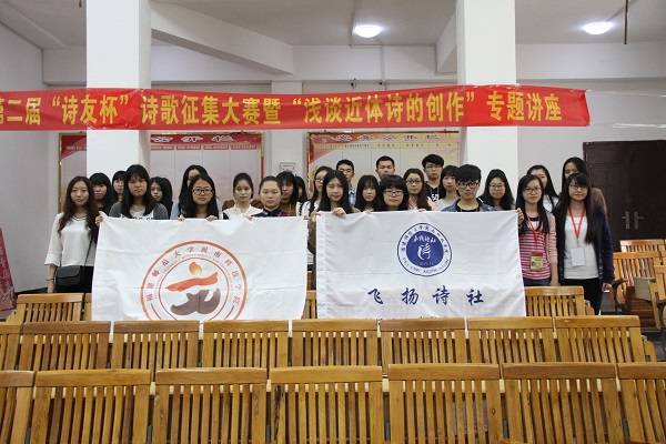 4月20日下午,人文艺术系团总支、学生社团联合会飞扬诗社开展第二届“诗友杯”诗歌征集大赛,邀请学院院长邱永渠教授在美林校区阶梯教室作“浅谈近体诗的创作”专题讲座。人文艺术系、学工部、团委等师生200余人到场聆听讲座。
