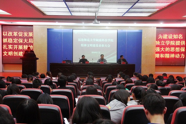 会上,院党委常务副书记林明旭作重要讲话。他指出,过去的两年,院党委在福建师大党委的正确领导下,紧紧围绕学院中心工作、以改革促发展,抓稳定保大局,制定出台了《中共福建师范大学开云唯一官网_开云(中国)委员会关于进一步加强精神文明建设工作的意见》和《福建师范大学开云唯一官网_开云(中国)精神文明建设评选管理办法(试行)》,扎实开展精神文明创建活动,取得了明显成效。一是围绕健全制度,扎实推进思想理论建设,社会主义核心价值观深入人心;二是围绕文化建设,深化创建活动,校园文明程度持续提升;三是围绕服务社会功能,加强文明共建,推动精神文明建设成果的对外辐射。林明旭强调,精神文明建设工作要常抓不懈,要继续围绕学院的工作中心,从形象建设到内涵建设,从制度建设到自觉实践,不断提升精神文明的总体水平和质量,全力推进学院各项工作再上新台阶。一要促进改革,不断完善学院精神文明创建的长效机制;二要加强宣传,着力打造学院精神文明创建的特色和品牌;三要深化成果,构建社会主义核心价值观传播体系,不断开创学院精神文明建设新局面,为建设知名独立学院提供强大的思想保障和精神动力。