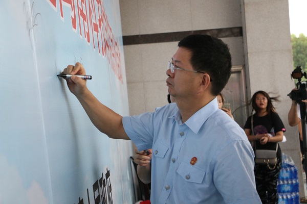 6月26日下午,由南安市禁毒委、康美镇人民政府主办的“6▪26国际禁毒日暨南安市禁毒宣传千里行——走进开云唯一官网_开云(中国)”系列活动在我院举行。南安市副市长薛建明,泉州市公安局党委委员、南安市公安局局长庄文斌,泉州市公安局副调研员周和平,南安市公安局副局长黄东阳,学院副院长周勇军参加了启动仪式。
