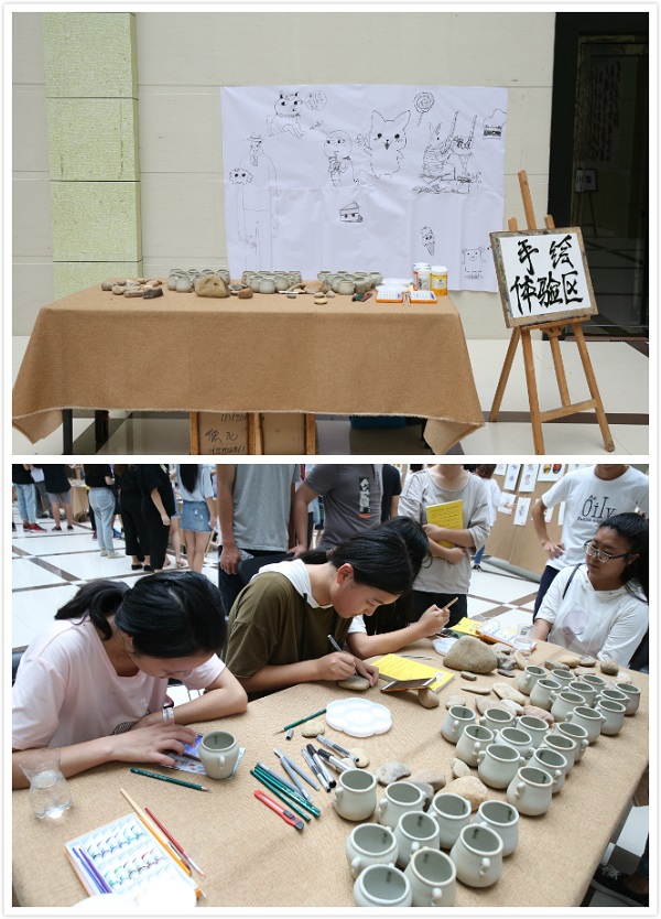 6月5日-10日,计算机科学系2015级数字媒体艺术专业学科竞赛“绘青春”优秀插画作品展及文创手礼研发作品、销售体验活动在图书馆举行。现场设置了作品展区、销售区、留言区、手绘体验区,作品包括手绘插画、石头彩绘、陶罐彩绘、木头彩绘等。