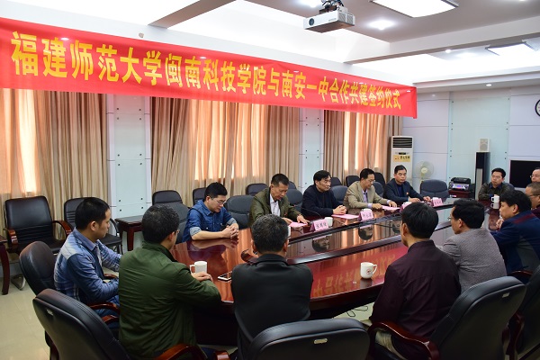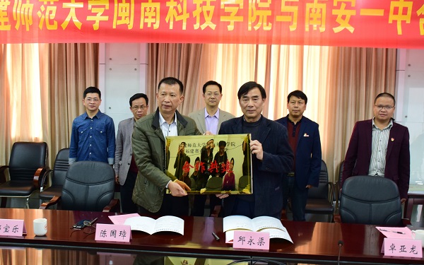 3月29日,我院与南安一中举行合作共建签约仪式,南安市教育局副局长卓亚龙、南安一中校长陈国璋、我院院长邱永渠,及部分教师代表出席了签约仪式。