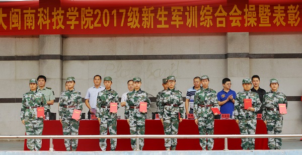 院长邱永渠和院党委常务副书记林明旭分别在美林、康美校区做总结讲话。他们代表学院党政向承训部队及教官们表示慰问与感谢,充分肯定了本次军训成果。并对2017级全体新生提出三点希望:一要有“天生我才必有用”的信心,将拼搏精神固化为优秀的品格,将良好习惯深化为行为准则,将纪律观念转化为优良作风,以优异的成绩、崭新的面貌向即将召开的党的十九大献礼;二要有“吹尽黄沙始到金”的毅力,继承部队的优良传统以及闽科人“爱拼会赢”的精神,为建设文明、和谐的闽科贡献自己的一份力量;三要有“直挂云帆济沧海”的志气,将个人理想和学院“仰望星空,脚踏实地”的校训结合起来,与实现振兴中华民族的中国梦结合起来,实现属于自己的青春梦想,为学院增光添彩。