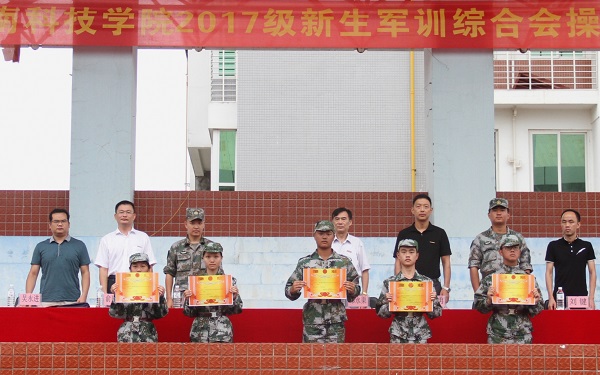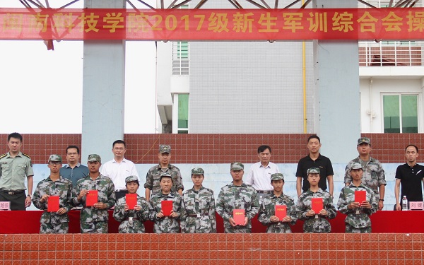 在综合会操中,数字媒体艺术专业获得康美校区第一名,国际经济与贸易专业获得美林校区第一名。大会还对军训征文、摄影、微信微博专题征集活动获奖个人,军训标兵、优秀教官、优秀辅导员标兵、军训工作先进个人,内务卫生文明宿舍及专业,会操优胜专业、军训优秀宣传集体等进行了表彰。