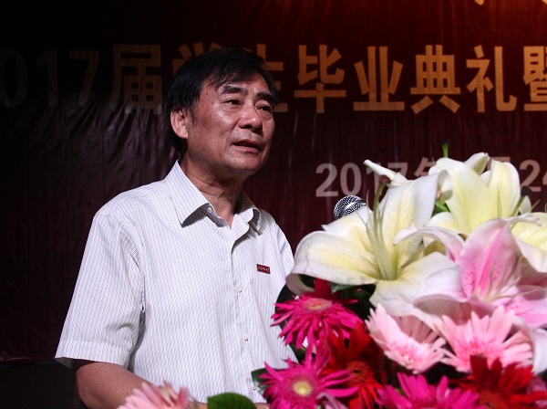 院长邱永渠代表学院向2017届圆满完成学业的毕业生表示热烈的祝贺,他回顾了2017届毕业生在校期间取得的优异成绩,与同学们做“三生三事”的约定。一是希望大家以“后生晚学”的心态,勤做小事,迈好走向社会的第一步,实现事业和人生的双丰收。二是希望大家以“初生之犊”的勇气,敢碰难事,保持直面挑战的勇气、乐观开朗的心态和昂扬向上的斗志,向各自的梦想远行。三是希望大家以“后生可畏”的信念,善抓大事,保持干一番大事的抱负,争做“止于至善”的践行者与传承者。邱永渠院长幽默风趣、接地气的毕业寄语赢得了全体毕业生的热烈掌声。