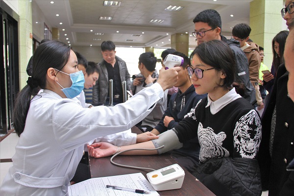 献血现场设有报名区、体检区、血检区、抽血区、领证区等,吸引了广大师生的踊跃参与,自愿为社会贡献自己的一份爱心。活动刚开始,同学们就积极地前往献血现场,或咨询献血相关事宜,或有秩序地填写《献血登记表》,在志愿者的协助下,医生了解前来献血同学的健康状况后,依次进行体检、验血、采血的献血流程,整个现场井然有序。短短一天时间,学院师生献血人数多达500人。
