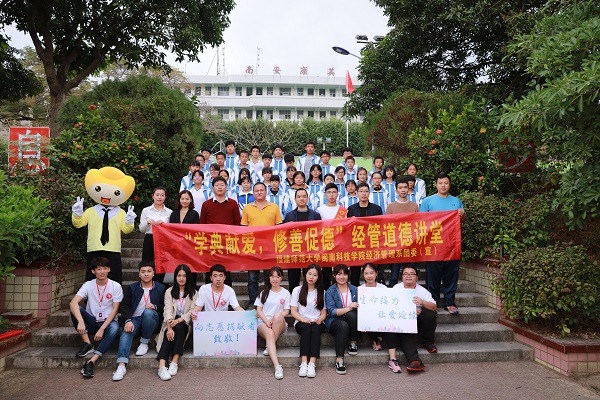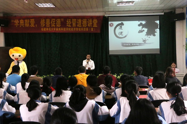 “得知自己配型成功,像中了彩票一样高兴,因为将有一个生命得到延续。”11月29日,学院经济管理系“道德讲堂”活动在南安市康美中学举行。康美中学校长黄长江、副校长刘福文,学院文明办主任陈范武、经济管理系团委书记阮海龙等老师参加了活动。