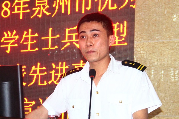 报告会上,来自4所高校的优秀大学生士兵代表林金文、陈柏栋、刘璐璐、施帅龙分别讲述了各自携笔从戎、献身军营,从一名大学生迅速成长为一名优秀士兵的历程。分享了他们参军入伍的青春梦想、部队生活的难忘经历、军旅生涯的宝贵收获,并鼓励广大青年学生要敢于有梦、勇于逐梦,踊跃报名参军,让青春在绿色军营中闪光。