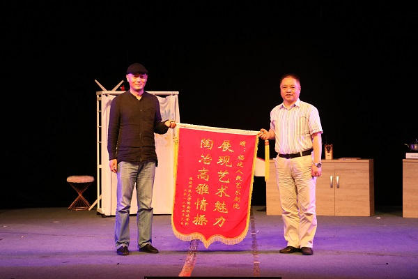 演出开始前,院党委常务副书记林明旭代表学院向福建人民艺术剧院赠送锦旗表示感谢。