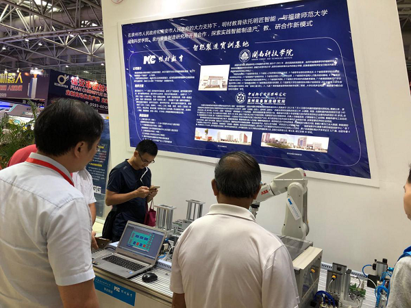 郑新聪在省发改委、经信委、教育厅等有关领导的陪同下专程来到我院展台,听取了关于我院智能制造专业群和公共实训基地建设情况的汇报。我院党委常务副书记林明旭、副院长吴勇向郑新聪一行汇报了学院联合中科院装备研究所、明匠智能、明材教育产教融合协同育人定制化培养高技能人才的模式。对我院已为大方睡眠同步培养产业技能人才后,郑新聪提出:“地方高校要加强应用型人才的培养,服务于产业升级。”