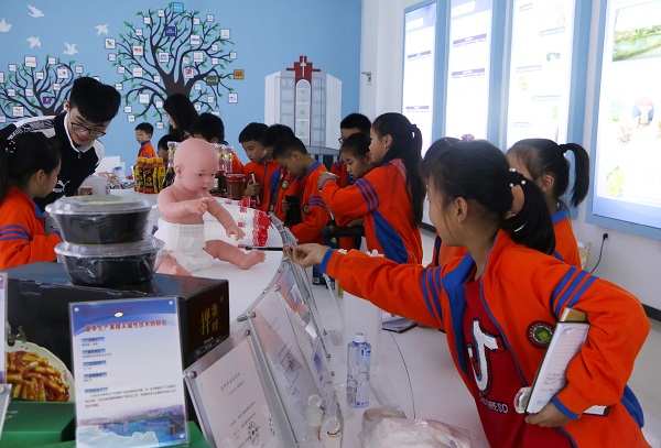 小记者们还参观了学院校史馆和应用成果展厅,在校史馆中,学院董事长热心公益、在家乡兴资办学的事迹让小记者们深受感动,他们表示,一定要好好学习,将来也能用一己之力回馈家乡。在应用成果展厅中,新型石墨烯抗菌纸尿裤、葡萄籽油手工皂、基于物联网技术的智能书桌等富有科技元素的项目成果让小记者们连连称赞,“没想到我们平常生活的这些产品,也需要应用到新科技。大学里的校园文化氛围和科技成果体验,让我们对未来的学习生活充满期待和向往。”