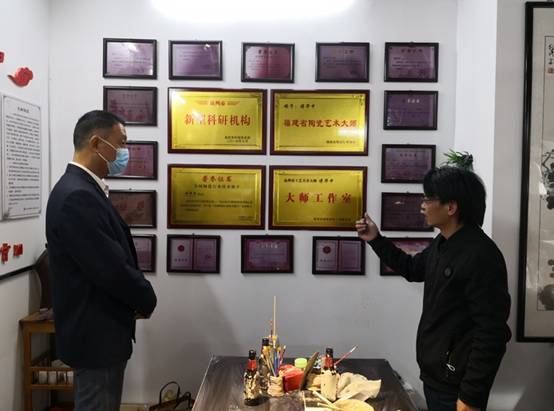 在泉州刺桐时代村,校领导一行详细参观了“福建省陶瓷艺术大师” “泉州工艺美术大师” “泉州工匠”傅华中老师的陶瓷工作室,并就双方合作事宜进行深入探讨。