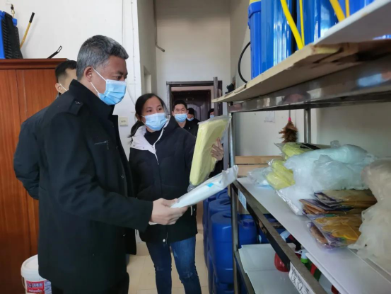 校领导一行分为三组,实地查看了学校大门门岗、临时医学观察点、防控物资储存室、实验室、教学楼、医务所、食堂、宿舍、学生活动中心、消防控制室等场所,与相关工作人员深入交谈,详细了解寒假期间及春季开学前后学校安全保卫、学生健康管理、后勤服务保障、教室与实验室安全、校园环境卫生等具体工作情况。