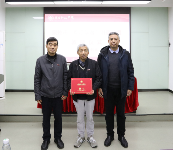 敦聘仪式上,校长游小波为李绍滋教授颁发聘书,校党委书记李旭为李绍滋教授佩戴校徽。