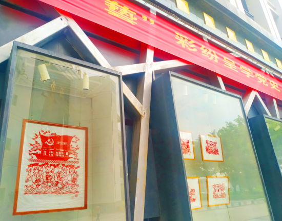 在剪纸艺术作品展中,展览紧扣中国共产党百年历史主题,创作出恢弘气派的北京天安门、五十六个民族图腾、党旗下的光辉等近百幅剪纸作品,将非物质文化遗产剪纸艺术与时代精神相融合,生动呈现了一百年来中国人民在中国共产党领导下取得的巨大发展成就。