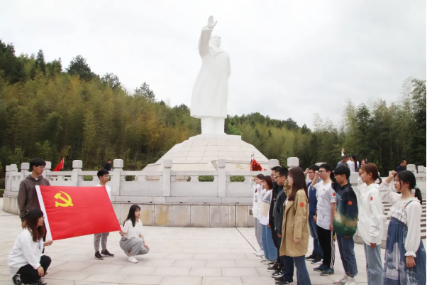 在毛主席纪念园,全体党员师生向毛泽东雕像三鞠躬,并瞻仰了毛泽东雕像,深切缅怀老一辈革命家的丰功伟绩。