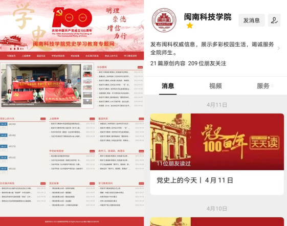 学校发挥思政课主阵地开展学习教育的同时,线上用好“新媒体矩阵”,充分利用网站、电台、微信公众号等网络新媒体,让党史学习融入生活,推动党员干部“指尖上”学党史。学校校园网开设党史学习教育专题网,选取整理党史学习教育、党史知识的视频、海报,在各级各类微信公众号推出“党史上的今天”“党史学习教育专题”等栏目,动态更新党史学习内容和党史学习教育报道,利用校内电台,开辟党史故事专栏,把“云端课堂”打造成“身边课堂”,为广大党员师生充分利用碎片化时间随时学、就地看搭建学习平台。