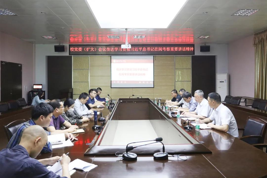会议指出,在“十四五”开局之年、开启全面建设社会主义现代化国家新征程开启之初,习近平总书记亲临福建考察指导,意义重大、影响深远。习近平总书记的重要讲话,高瞻远瞩、思想深邃、内涵丰富,为学校立足新发展阶段,贯彻新发展理念,积极服务并深度融入新发展格局,加快构建高质量教育体系,办好人民满意的教育,指明了前进方向,提供了根本遵循。