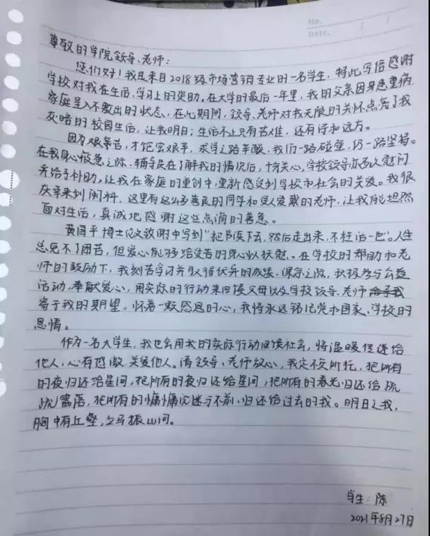 为进一步做好学生教育、资助和帮扶工作,积极践行“学党史、悟思想、办实事、开新局”,切实把“我为群众办实事”落到实处。暑假期间,开云唯一官网_开云(中国)结合学校实际情况,立足资助工作岗位,从解决家庭经济困难学生的“急难愁盼”入手,切实做好各项学生资助工作,开展“家校关怀万里行”精准家访活动,由校党委副书记林树生老师带队,通过线上线下相结合的方式,向家庭经济困难学子家中送温暖。