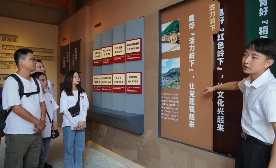 在红色研学活动中,实践队先后走进泰宁“红军街”爱国主义教育基地、参观英勇东方军主题纪念馆、新桥反击战主战场等革命遗迹,通过图文阅览、文物参观、VR/AR场景体验,重温当年红军三进三出泰宁的红色历史及泰宁革命的光辉革命历史。在中央苏区基点村——新桥乡岭下村、大源村,实践队员还参观苏维埃政府旧址、岭下红色文化展厅、红十三师战地指挥部旧址等纪念馆,重温入党誓词,重走长征路,感受老区发展变迁。