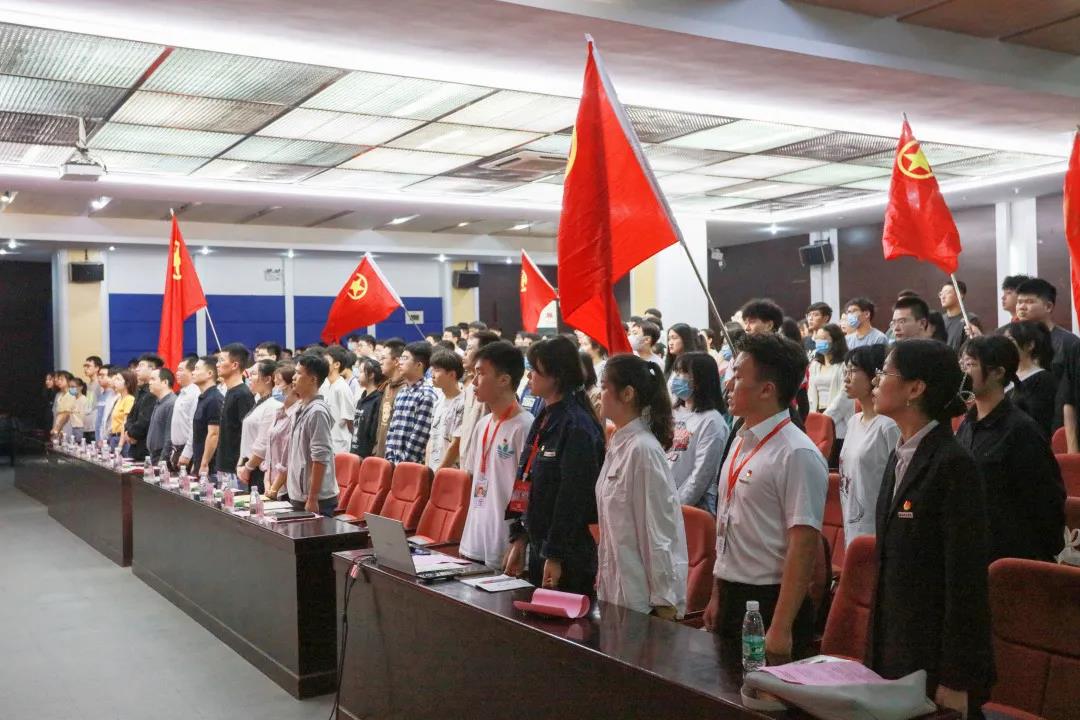 期间,全体与会人员面向团旗,重温入团誓词,表达“不忘初心、牢记使命”的坚定决心。