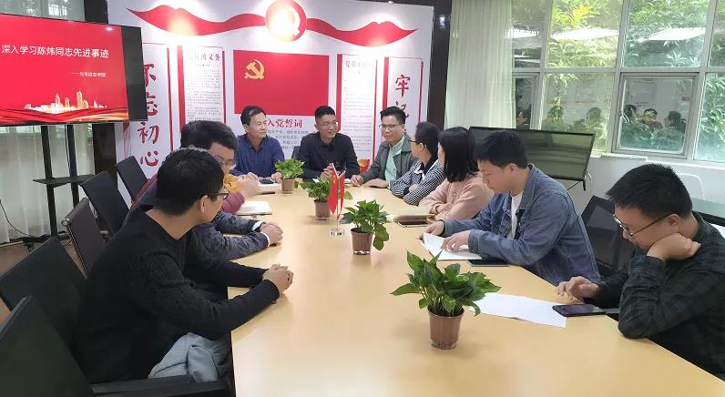 大家纷纷表示,陈炜同志的先进事迹充分展示了共产党员的本色和内涵,我们要在今后的工作中以榜样的力量激励自己,践行陈炜同志“初心不改、立德树人、敢为人先”的教育理念,努力实现自身的进步与发展,为学院各项事业发展贡献自己的力量。
