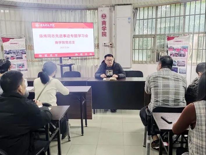 12月24日,商学院党总支召开陈炜同志先进事迹学习会。学院党总支副书记(主持工作)陈章宫带领全体人员学习陈炜同志一辈子坚守教育初心、不改本色的感人事迹。他要求全体党员干部与教师要以陈炜同志为学习榜样,夯实党性根基,筑牢理想信念,坚定教育初心,以实际行动破解发展难题,推进学院发展。
