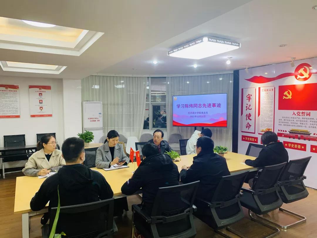 12月21日,艺术设计学院党总支召开理论学习中心组专题学习(扩大)会,专题学习陈炜同志先进事迹。