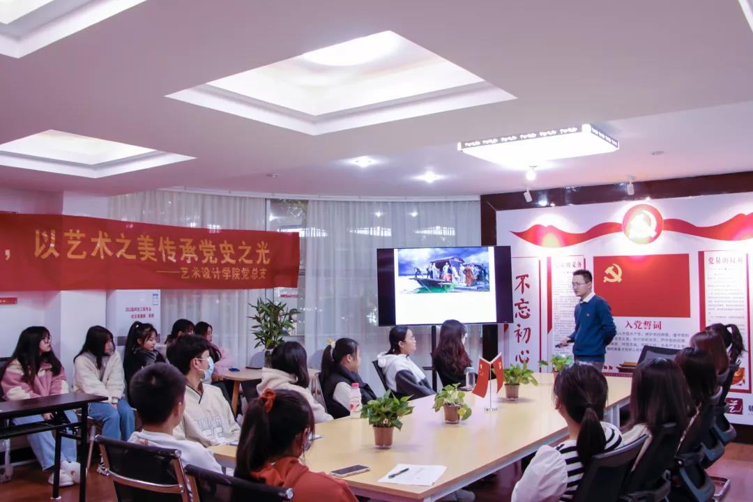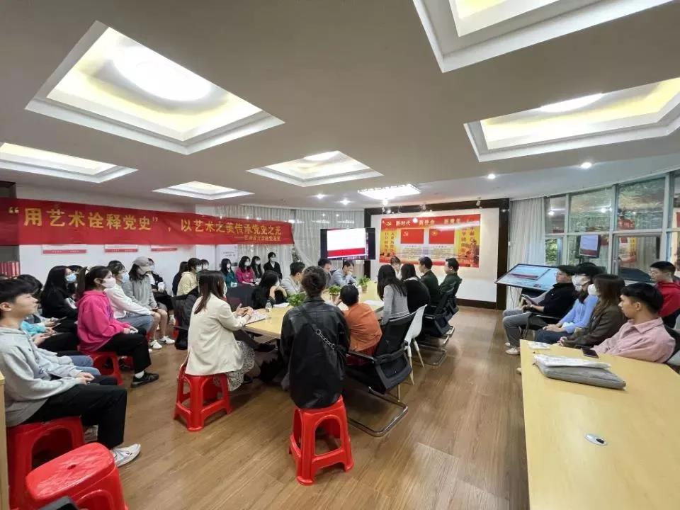 连日来,艺术设计学院党总支在党史学习教育中紧密贴合学科专业优势,开展“用艺术诠释党史,以艺术之美传承党史之光”系列主题党课,把党史学习教育用心学进去,用情绘出来,更好地引导广大师生学史明理、学史增信、学史崇德、学史力行,用艺术的感染力和影响力凝聚起师生奋进新征程的磅礴力量。
