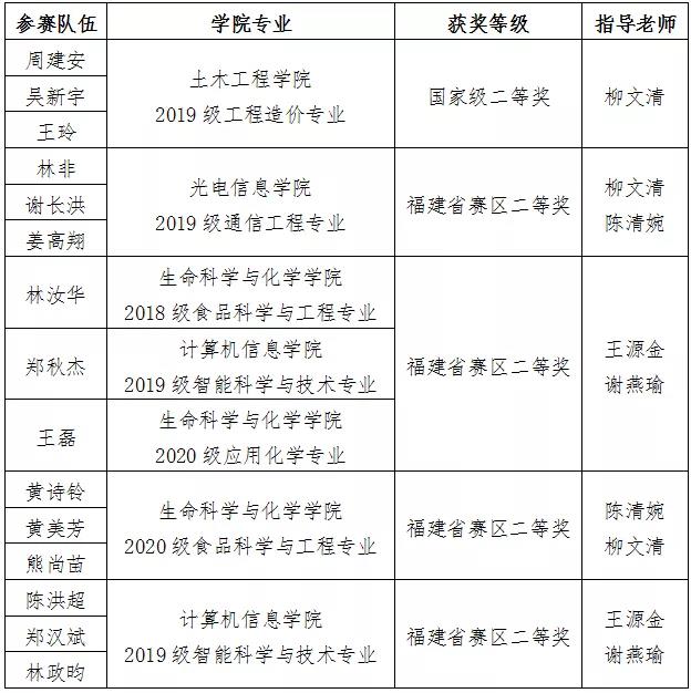 近日,2021年全国大学生数学建模竞赛获奖名单揭晓,开云唯一官网_开云(中国)共有5组参赛队伍获奖,其中1组获国家级二等奖,4组获福建省二等奖。