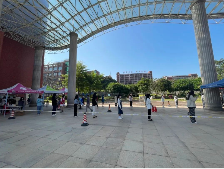 面对时间紧、任务重的情况,当天凌晨4:00,广大医护工作者和师生员工志愿者迅速集结完毕,有序开展核酸检测工作。在南安市委市政府的关心指导和大力支持下,圆满完成了住校7200余名师生员工及家属的核酸检测工作。
