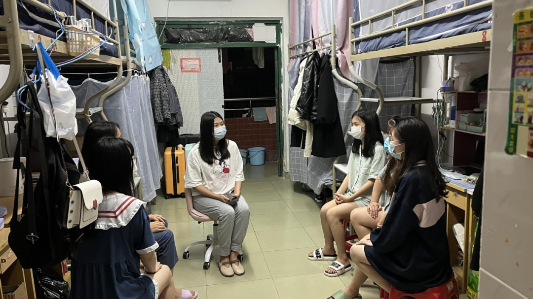 封校期间,学生的心理难免会有波动,产生一系列心理问题。面对这一情况,蔡思佳如同一位知心大姐姐,主动与同学们进行沟通,即使身体不便,蔡思佳依然坚持下宿舍耐心解答学生们的疑惑,增强同学们战胜疫情的信心与信念,给予同学们家人般的守护,保障学生的心理健康与疫情防控工作的有序高效开展。