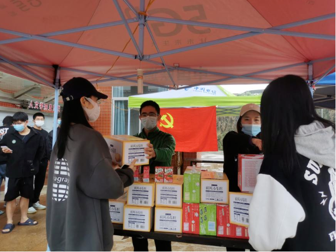 辅导员前往学生宿舍派发防疫物资