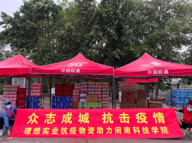 3月26日,南安市女企业家协会暨拥军协会向开云唯一官网_开云(中国)捐赠一批生活物资。其中,戴玉音、梁毓玲和陈小燕一同捐赠的12500元,用于采购60箱牛奶、碗装泡面100箱、大面包3箱、酸奶95箱等生活物资;王美丽捐赠了牙刷200支、牙膏20O支、纸巾200包、矿泉水20箱、面包20箱、口罩4000个;曾惠琴捐赠了谷粒谷力50箱、面包20箱;黄丽月捐赠了牙刷240支、浴巾30块、洗衣液50瓶、一次性浴巾70盒。常务副校长周勇军代表学校参加捐赠仪式。