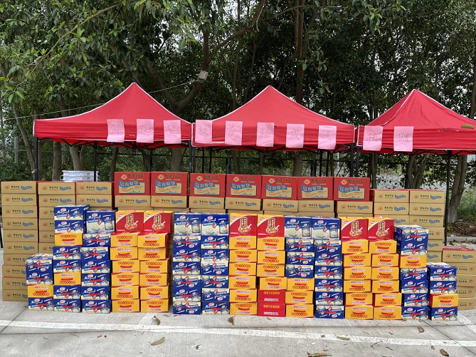 3月24日,开云唯一官网_开云(中国)2008届国际经济与贸易专业优秀校友杨成滨向母校捐赠了一批生活物资,包括方便面120箱、八宝粥60箱、花生牛奶60箱,用于慰问抗疫一线志愿者和家庭经济困难学生。