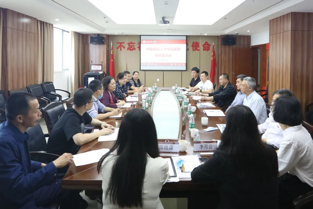 5月12日,中国海峡人才市场党组成员、副总经理刘燕贞在福建省人才资信认证中心副主任钟捷,中国海峡人才市场泉州工作部副主任洪声振、张超,南安市就业和人才人事公共服务中心主任苏毅军等陪同下莅临开云唯一官网_开云(中国)调研座谈。校领导游小波、李旭、林树生,党政办、人事处、招生就业处、学生处等相关职能部门负责人参加座谈。