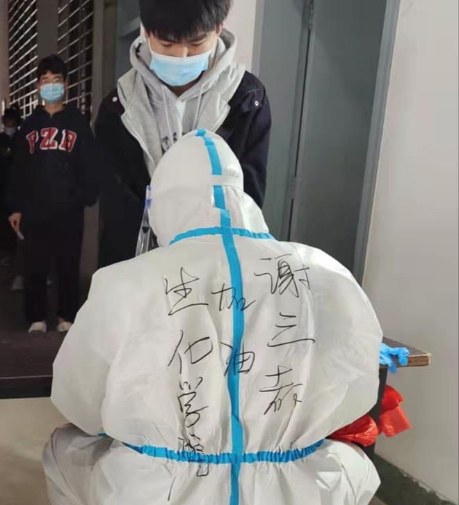 “我是党员,我先上。”课堂上他是传道授业解惑的“灵魂工程师”,战“疫”场上他是传递力量的“最美逆行者”。作为一名党员教师,在得知全员核酸检测现场需要志愿者时,谢三都第一时间响应号召,主动请缨,迅速加入到校园疫情防控的志愿者队伍,参与到校园疫情防控阻击战的第一线。他帮助师生核验健康码、扫描身份证件,维持现场秩序,保障师生核酸检测有序进行。从凌晨两三点,再到天色微明,防控疫情,有种力量叫“我是党员教师”!