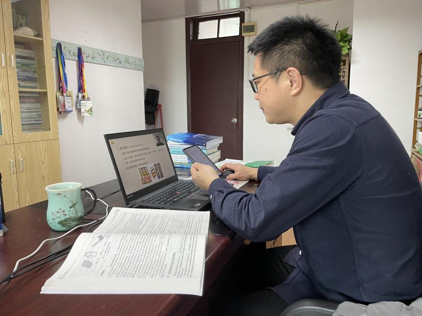 作为教师党支部书记,他组织支部党员以“落实党员教师抗‘疫’行动”为主题开展线上主题党日活动,积极引领党员教师调整课程计划、安排线上备课、挖掘课程思政案例、统筹已有在线课程等,确保线上教学秩序稳定,扎实推进学院线上教学的内涵建设。