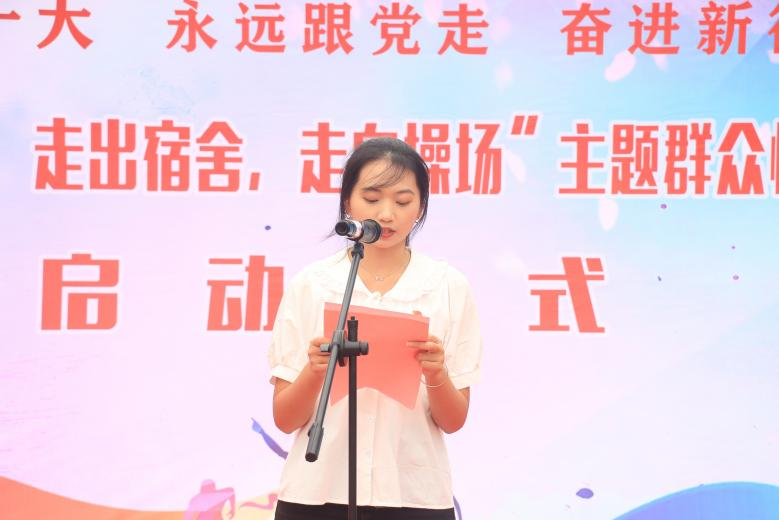 校学生会执行主席张慧琳宣读“三走”活动倡议、比赛评分细则、活动安全注意事项等