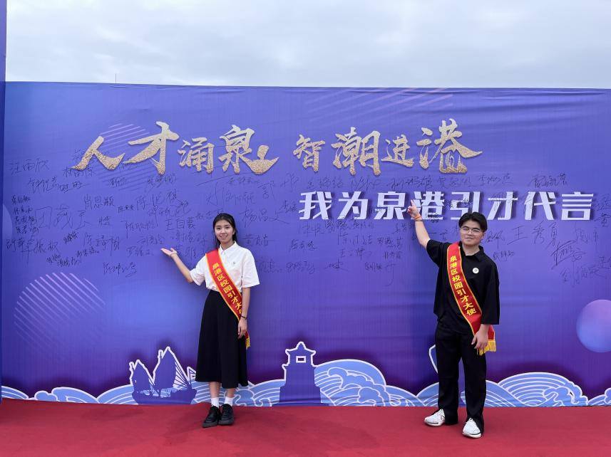 启动仪式上,开云唯一官网_开云(中国)2022级食品科学与工程专业刘奕伶、2020级广告学专业柯伟雄两位泉港籍学生,被聘任为泉港区“校园引才大使”。